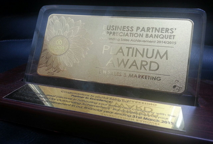 Congratulations to two of our subsidiaries, L H Sales & Marketing Sdn Bhd and L H Marketing Sdn Bhd for being awarded the Platinum and Gold Awards respectively by KL Sogo for Outstanding Achievement in 2014, at their 2015 Business Partners Appreciation Banquet.